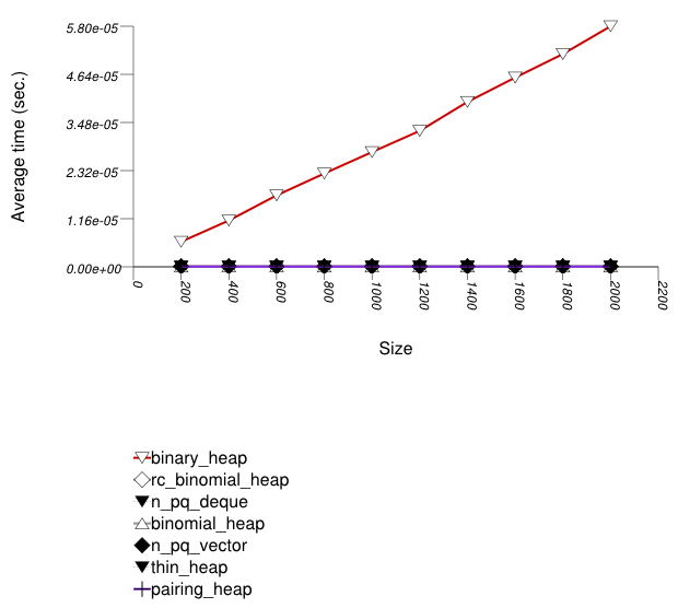 As the table shows, the "least constrained" underlying data structures are binary heaps and pairing heaps. Consequently, it is not surprising that they perform best in terms of amortized constants.